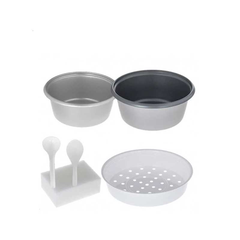 جنس ظرف : تفلون نچسب برای پخت برنج و آلومینیومی مخصوص برای بخارپز کردن